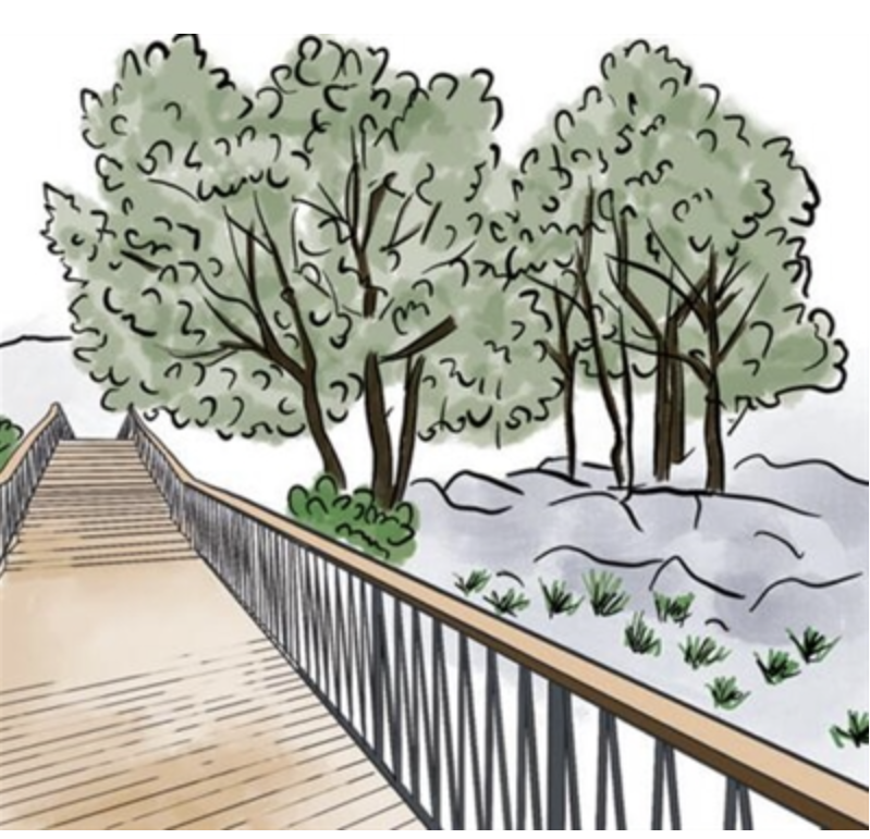木棧道與環島慢行系統相連,全長5公里,建成后將成為碳匯展示路線。環島步行慢道沿途還設有電力座椅,可實現自主供給電力,為游客提供無線網絡以及無線充電。